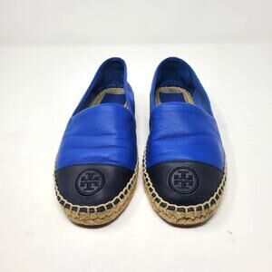 Tory Burch Leather Colorblock Flat Espadrilles Jelly Blue Tory Navy Size 7.5
