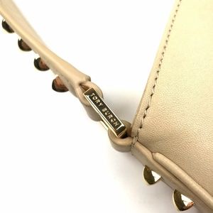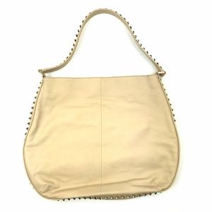 Tory Burch Women's Ivory White Pyramid Studded Leather Hobo Shoulder Bag Purse