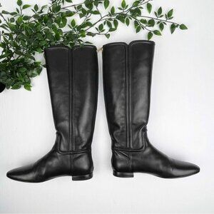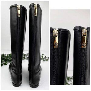 Tory Burch Leather "Irene" tall riding Boot gold logo style 5444 size 6.5 M