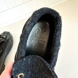Details: Tory Burch Low Top Rain Duck Boots Leather - Size: 6M- Color: Black- Material: Leather- Features: Slip on, lace up detail, round toe, waterproof