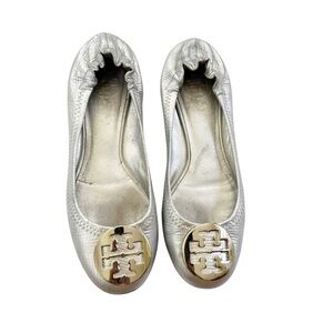 Tory Burch Leather Silver Metallic Ballet Flat Size 6.5