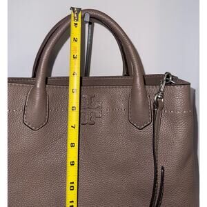 Tory Burch Leather Tote Bag Taupe Top Handle Shoulder Strap Satchel Used