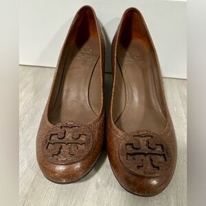 Tory Burch Leather Wedge Pumps Brown size 10 1/2
