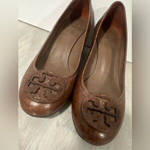 Tory Burch Leather Wedge Pumps Brown size 10 1/2