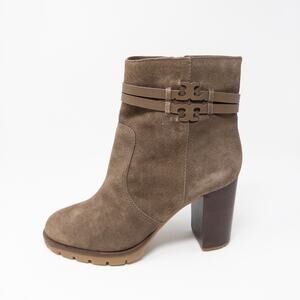 Tory Burch Leigh 90mm Lug Sole Boots River Rock Suede Womens 10 3.5” Heel. Brand new but does not ship with the original box