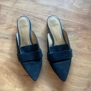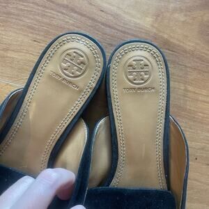 Tory Burch Leigh Suede Ballet Mules in Black Leather - Size 9M