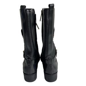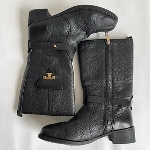 Tory Burch Leona Black Pebbled Leather Mid Calf Moto Boots Size 8 M