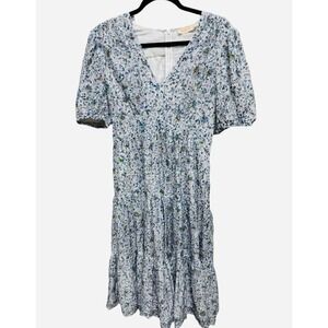 Tory Burch Light Blue Floral Lace Lined Tiered VNeck Midi Dress Size 8
