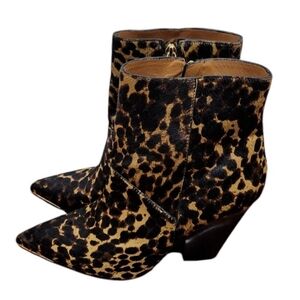 Tory Burch Lila Leopard-Print Calf Hair Pointed Toe Ankle Boots Size 9 M $498