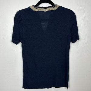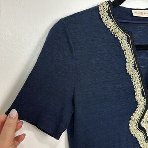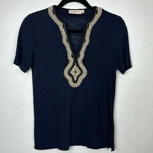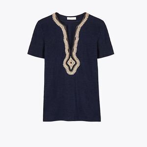 Tory Burch Liliana Embroidered Slub-Knit Tee In Tory Navy Size XXS