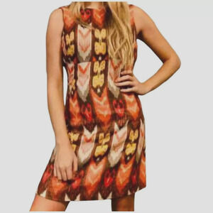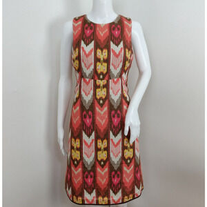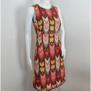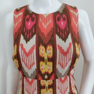 Tory Burch southwestern ikat sheath dress in women's size 2. Sleeveless. Multi-colored linen fabric has a silver shimmer. Back zipper. Lined. Gently pre-owned.