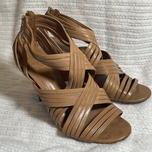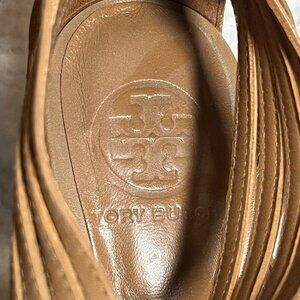 Tory Burch Liv Cage Gladiator Shoes Brown Leather Zipper Heels Open Toe Size 8