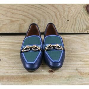 Tory Burch Loafers Women 7 M Blue Leather Green Rhinestone Jessa Horse Bit Flats