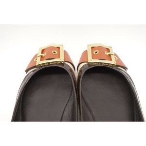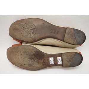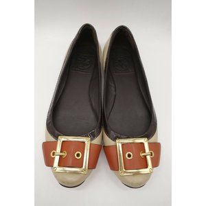 Tory Burch Logo Beige Orange Leather Buckle Toe Slip On Flats Shoes Women's 6 M