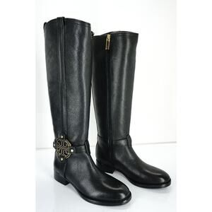 TORY BURCH LOGO BUCKLE AMANDA TALL LEATHER RIDING KNEE HIGH BOOTS SZ 5 NEW $495