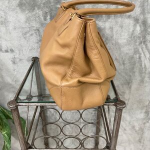 Please see all photos for size and condition details. Tan Brown gold tone hard wear.