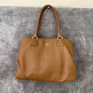 Tory Burch Logo Leather Bag double handles magnetic close, side expandable snaps