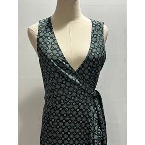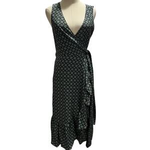Tory Burch Medallion ruffle wrap dress size 6 Draped in Italian crepe fabric, the Ruffle Wrap Dress is covered in a menswear-inspired medallion print, featuring our iconic double 'T'. Ultra-flattering, with a nipped-in waist, it looks great with the season's loafers and slip-on flats Empowering, colorful, and distinctly American designs. Ruffle Wrap Dress in black batik medallion with pleated back waist Self-tie wrap closure - 100% polyester -Poly georgette lining -Designed to hit just below the knee -Dry clean - color-black batik-(teal green-black multi)
