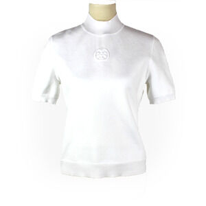 TORY BURCH LOGO MOCK NECK SHORT SLEEVE BRIGHT WHITE KNIT TEE SHIRT