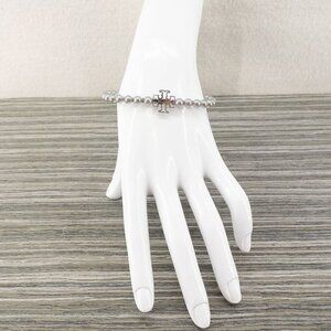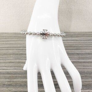 Tory Burch Logo Pearl Cuff Bangle Silver OS