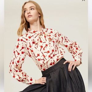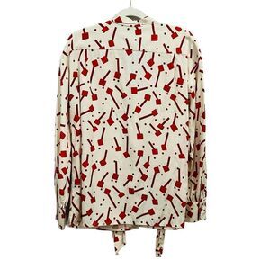 Tory Burch Lollipops Jacquard Bow Blouse long sleeve silk collared Top size 6