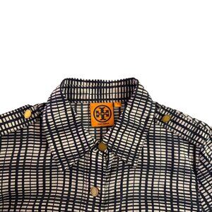 Tory Burch Long Sleeve Button Down Blue and White Cotton Shirt (size 4)