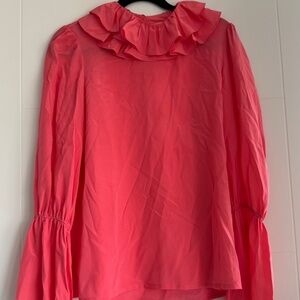 Tory Burch Long Sleeve Ruffle 100% Silk Blouse , Size 8, Peach