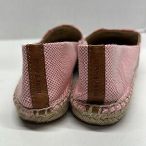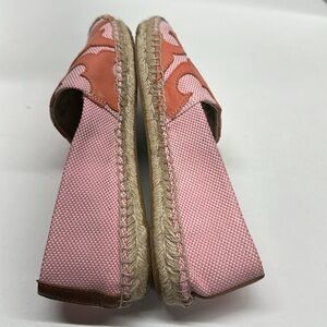 Tory Burch Lonnie Espadrille Flats Slip On Canvas Jute Shoes Pink Tan Size 9.5