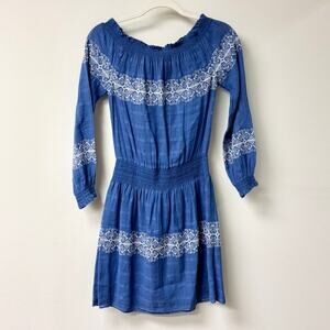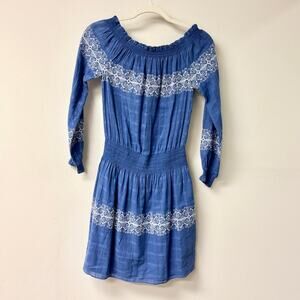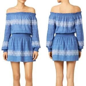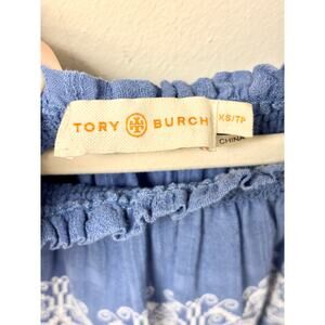 Tory Burch Loretta Off-Shoulder Blouson Mini Dress Blue / White Women's Size XS