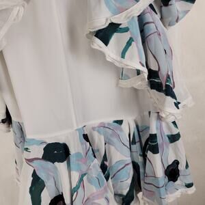Tory Burch Louisa 100% silk floral pleated ruffled hem midi skirt Sz 6 feminine