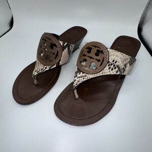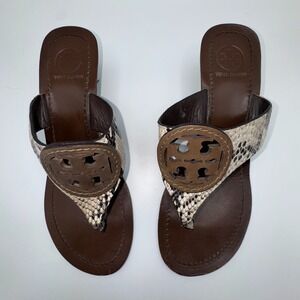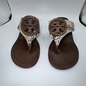 Tory Burch Louisa Women Thong 7.5M Beige Brown Leather Snakeskin Sandal 22158536