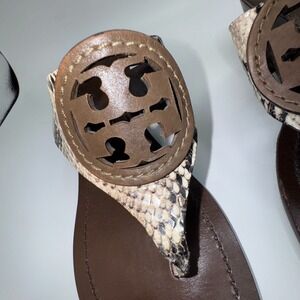 Tory Burch Louisa Womens Flat Thong 7.5 M Beige Brown Leather Snakeskin SandalsDescription