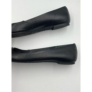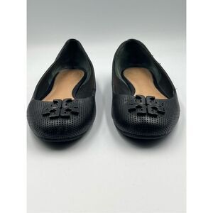 Tory Burch Lowell 2 Perforated Black Leather Ballerina Ballet Flat w Logo Size 7