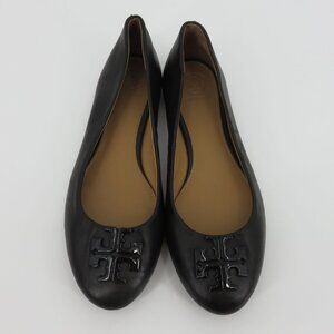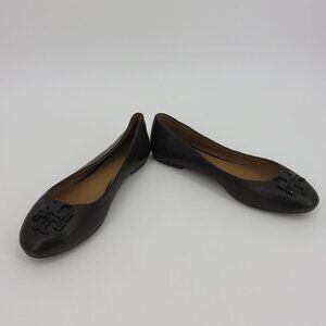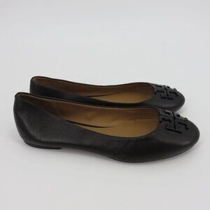Tory Burch Lowell 2 Women 8 M Black Leather Ballet Flat Slip On Shoes 57778 Logo