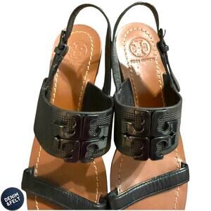 #ToryBurch #LowellSandals #BlackLeatherHeels #SlingbackSandals #DesignerShoes #BlockHeels #Size7Half #ClassicStyle #IconicLogo #WomensSandals