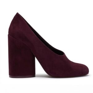 An architectural take on a streamlined style for day or evening. Crafted in rich jewel-toned suede, our season-spanning and statement-making Lucia Pump has a high-cut vamp and an exaggerated cylindrical block heel for a sculpted finish.