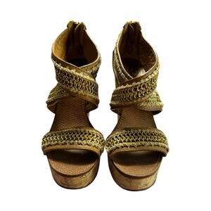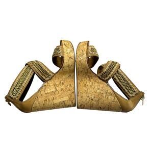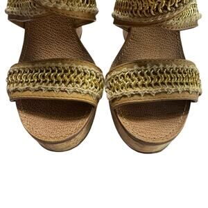 Tory Burch Lucian Tan Leather Gold Chain Strappy Wedge Platform Sandals - Size 7 ½