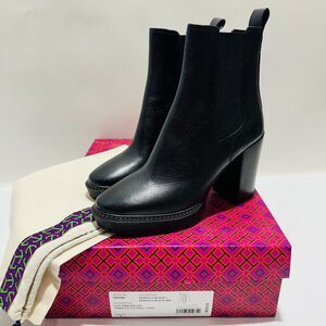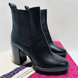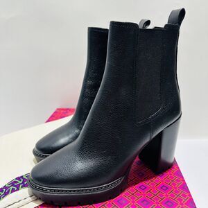 Tory Burch Lug 70mm Women's US 9 M Chelsea Boots Black Tumbled Leather NIB $448