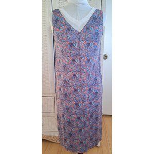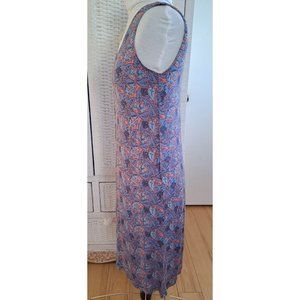 Tory Burch MIDI Dress Fun Print Blue Coral/ Orange Silk Simple Easy to Wear SZ S