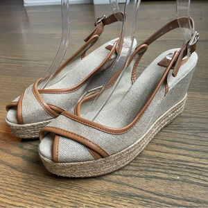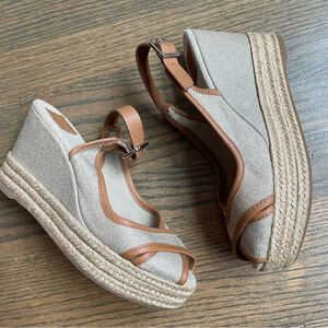 Tory Burch Majorca Peep-Toe Wedge, Royal Tan 36