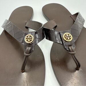 Tory Burch Manon Thong Sandal Croc Embossed Leather Flip Flop