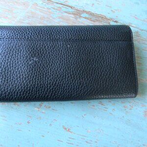 Tory Burch Marion BLACK PEBBLE LEATHER Envelope Continental Wallet. GORGEOUS!! GREAT USED CONDITION, SNAP CLOSURE, CLUTCH STYLE, LOTS OF CREDIT CARD SLOTS AND POCKETS.