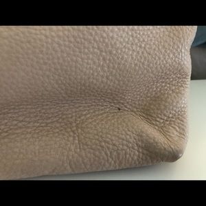 Nude/Pink slouchy tote. Exterior is slightly worn. With two minor scuffs (shown in pictures). Interior is clean, with 3 pockets, and 2 zipper pockets. Magnetic close.