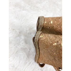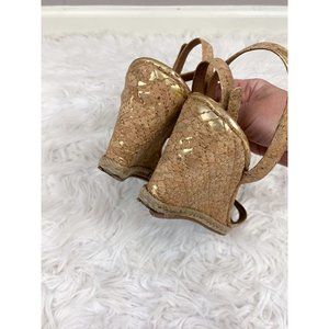 Tory Burch Marion Quilted Cork Espadrille Wedge Natural Gold Sandals Ankle Wrap