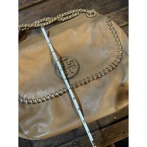 Tory Burch Marion Whipstitch Saddle Bag Tan Leather 2-way Bag Soft