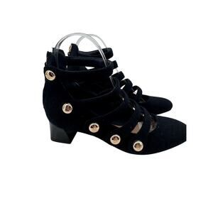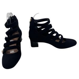 Tory Burch Marisa Black Wool Strappy Pump Heels Women's Size 6 Black