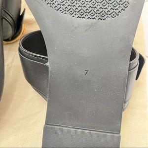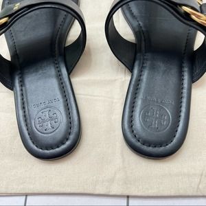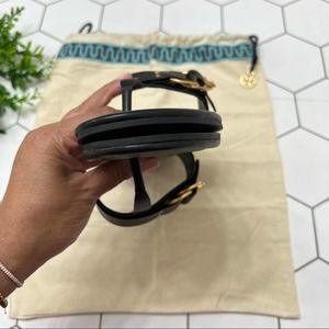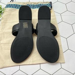 Tory Burch Marsden Flat Thong Sandal 7 black with gold buckle.