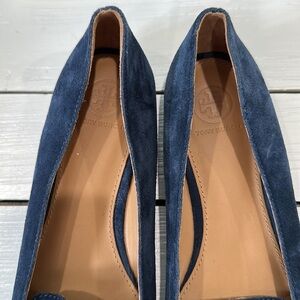 Tory Burch Marsden Smoking Loafer Blue Suede Gold Hardware size 8