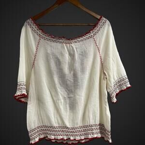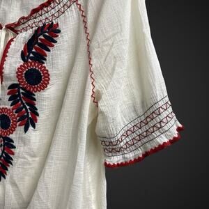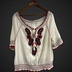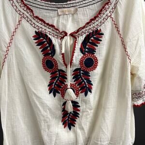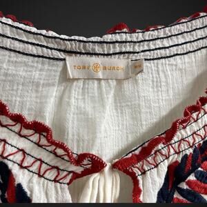 Tory Burch Mary Peasant Embroidered Top Medium Tie Front Off Shoulder Boho