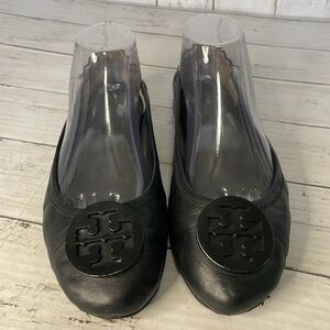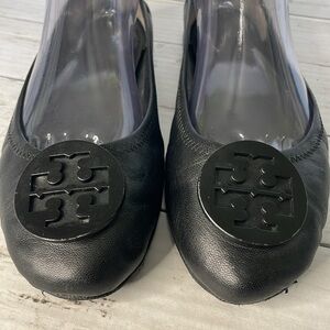 Tory Burch Matte Finish Logo Black Minnie Ballet Flats